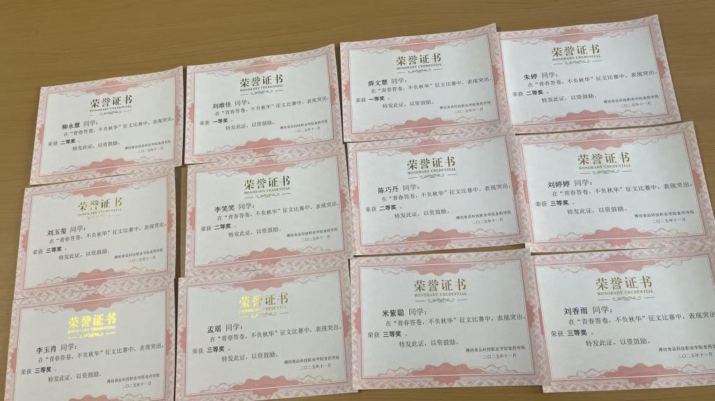 此次征文比赛为同学们提供了一个抒发心声、展示才华的平台,不仅丰富了校园文化生活,更凝聚了青春奋进的正能量。我们在未来将持续开展各类主题文化活动,引导广大青年学子以笔为剑、以梦为马,在青春的赛道上奋力奔跑,书写无愧于时代、无愧于韶华的精彩答卷。
