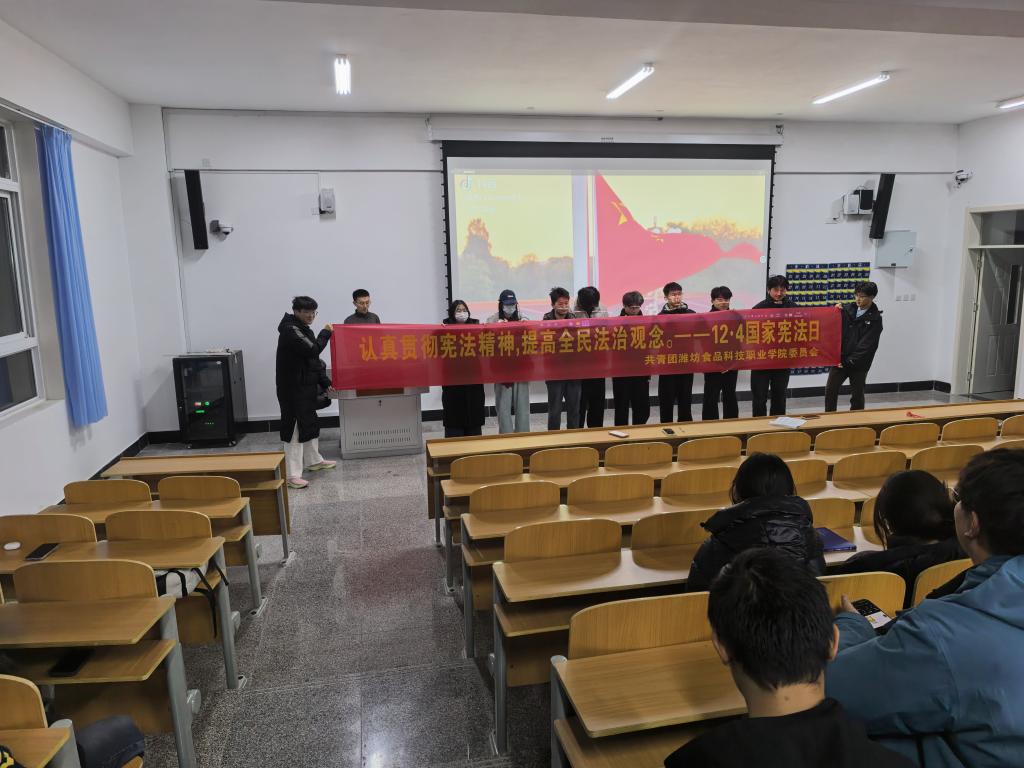 2025年12月4日是我国第十二个国家宪法日,食药学院团总支组织2025级学生开展“认真贯彻宪法精神,提高全民法治观念”主题班会,通过沉浸式学习让宪法知识入脑入心,切实筑牢学生法治信仰。