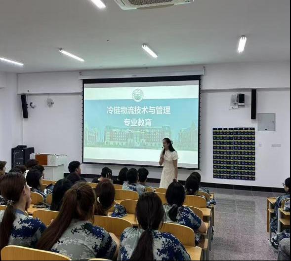 冷链物流专业郭汉全老师全面细致地从学校概况、专业基本概况、专业人才培养方案、专业特色、就业方向等方面进行了介绍与分析,主要目的是让学生了解专业基本情况、就业行业及岗位、就业趋势、职业发展路径、大学学习内容和方式、毕业条件等。专业介绍中加强了专业群融合、产教融合、校企合作方面内容的讲解,让新生对所学专业有更全面的认识,从而激发他们的学习兴趣,增强其专业认同感。