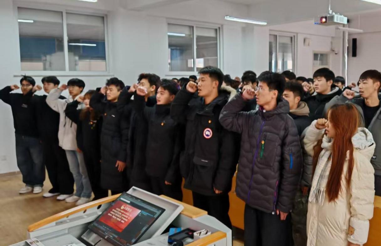 活动现场举行了庄严肃穆的集体宣誓仪式。学生共青团员佩戴团徽,高举右拳,重温入团誓词。宣誓仪式不仅将教育活动推向高潮,更将外在的教育内化为坚定的信念和行动指南,极大激发了“强国有我、青春有为”的豪情壮志。