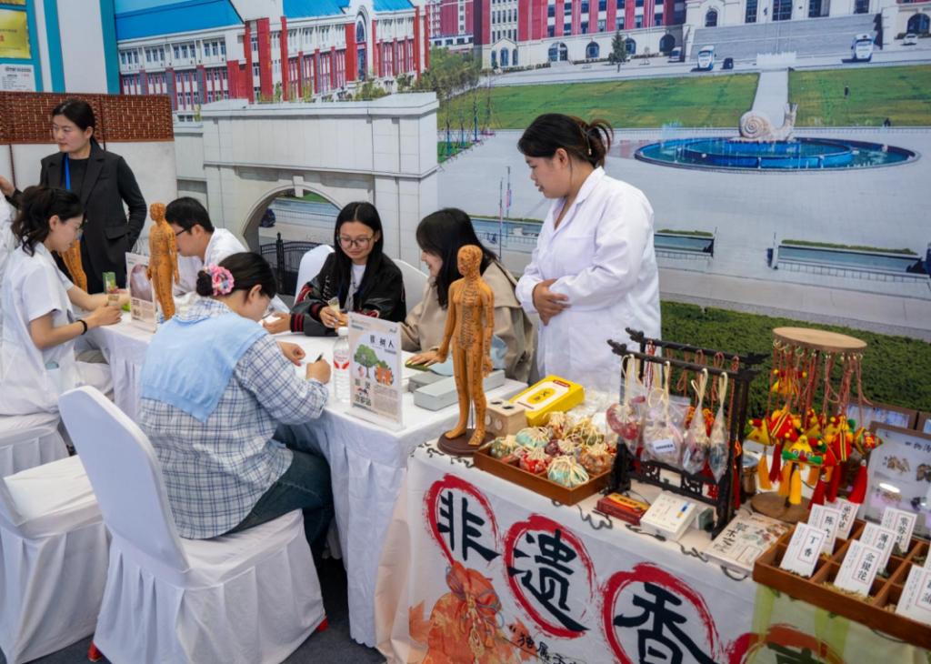 专业推拿技师团队开展养生教学,展示推拿技艺,向观众传授养生妙招,更有精美中药香囊,散发传统医药芬芳。
