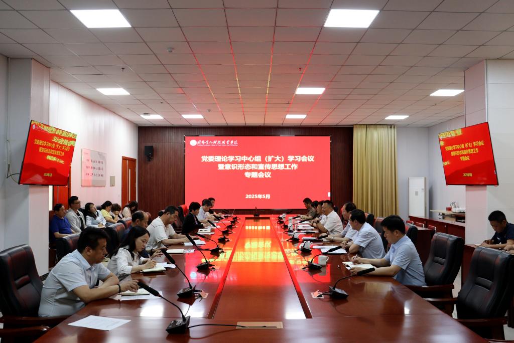 5月28日,我校召开党委理论学习中心组(扩大)学习会议暨意识形态和宣传思想工作专题会议,围绕意识形态和宣传思想工作进行专题学习研究。党委书记肖明胜等全体校级领导,省派党建指导员,各党支部书记,各职能部门(院系)主要负责人,各院系分管意识形态和宣传思想工作的负责人,党群工作部、宣传统战部、学生工作部相关人员,马克思主义学院全体教师参加会议。会议由党委副书记郇延民主持。