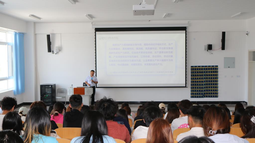 6月17日,一场以“加快发展新质生产力”为主题的“大思政课”在我校教学中心举行。学校党委书记肖明胜为全体师生带来了一场内容丰富、思想深刻的精彩讲座,深入解读了新质生产力的内涵、意义以及实践路径,激励广大青年学子积极投身于这一关乎国家发展全局和民族复兴的伟大事业中。